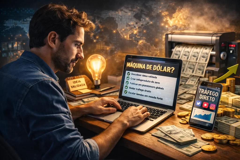 Você não precisa falar inglês fluente, morar fora do Brasil ou ser especialista para criar um infoproduto e começar a vender em DÓLAR ainda em 2026.